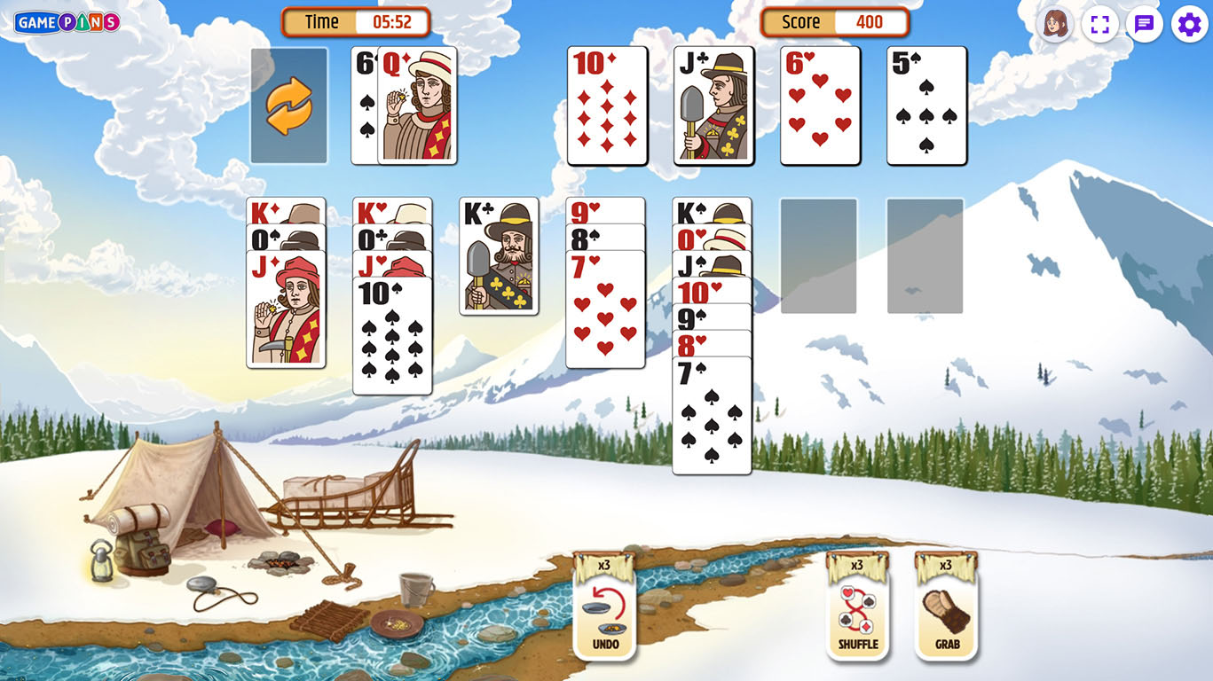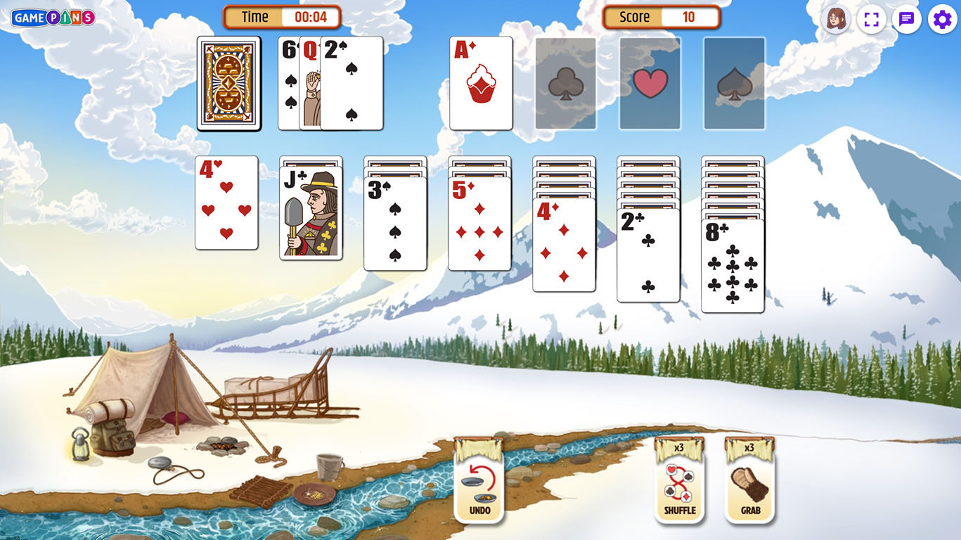 - Out of moves or feeling stuck? Use power-ups like the Grab to pull the next card onto any Foundation pile, or the Shuffle to re-order the Draw pile.