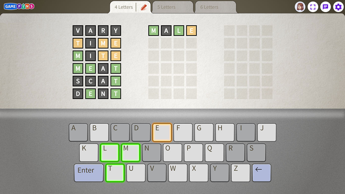 - Test your instincts and use all the logic you can muster to guess each of the 3 available words each day! Select the 4-letter, 5-letter, or 6-letter word tab to get started.